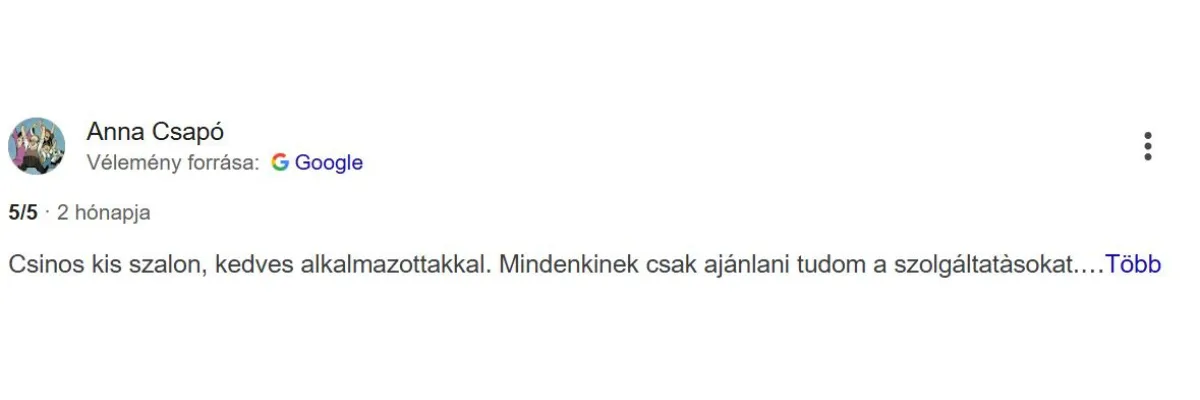 Szalonunkban a vendégélmény a legfontosabb: fodrászat, kozmetika, kézápolás, masszázs, torna és testkezelés vár, mind holisztikus, egészségközpontú szemlélettel. Mi nem csak a külső megújulásról, hanem a belső egyensúlyról is gondoskodunk – teljes körű törődéssel, személyre szabva.